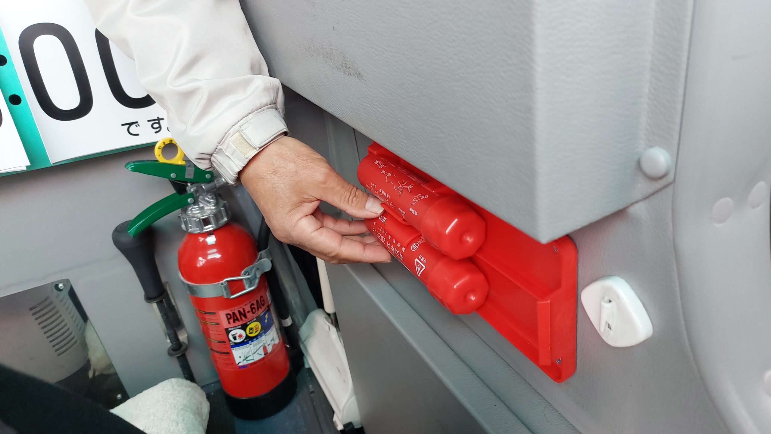 発煙筒・消火器の設置位置も再確認し操作手順も確認しました。
